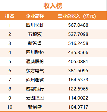 2025年上半年川股营收前十的企业。