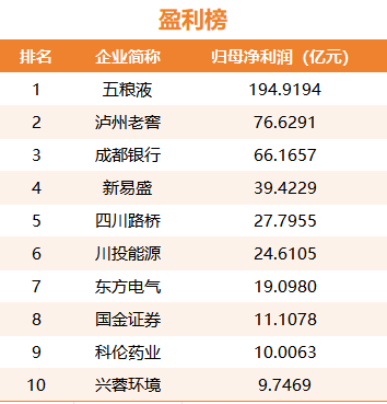 2025年上半年川股盈利前十的企业。
